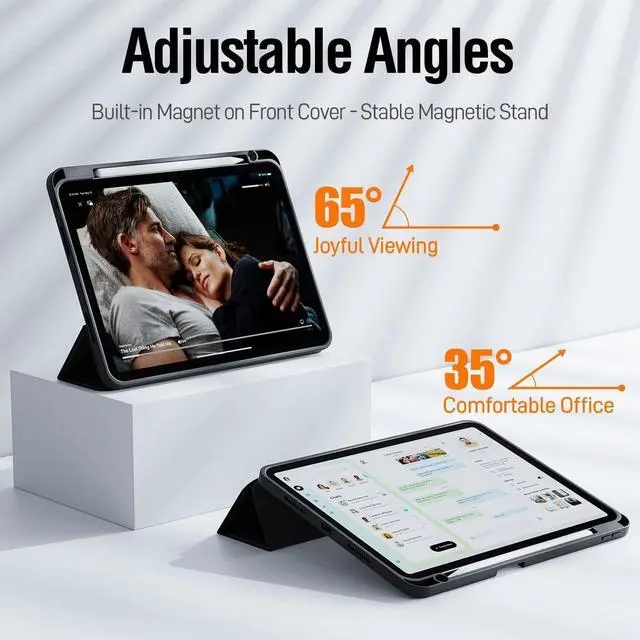 (NOTE: APPLE PENCIL IS NOT INCLUDED IN THE PACKAGE. ) ^^ / Magnetic smart cover supports auto sleep/wake feature, it automatically wakes your iPad when opened and puts it to sleep when closed. quickly wake up/sleep, energy-saving and loss-reducing, save standby power. It minimizes power consumption and extends the standby time of your iPad inch, and improving battery lifespan. ^^ - Easily fold the front cover to convert it into a stand that supports your 11 inch iPad pro stably. Two adjustable angles, 35angle or 65angle, it can meet your different needs for reading, viewing, typing, surfing the web, drawing, chatting, handle emails, watch videos, online learning or making FaceTime calls. Enjoy the fun of freeing your hands. ^^ - Durable PU leather lid with soft microfiber lining and flexible TPU back cover. PU leather, silky touch, cool and comfortable, strong anti-dirty, clean with one wipe, TPU material, easy to install, and equipped with a dual airbag protection structure to withstand various accidental drops, bumps and scratches. soft microfiber as the lining to enhance screen protection.
