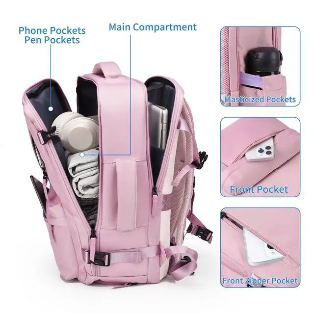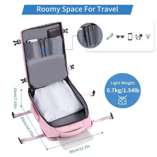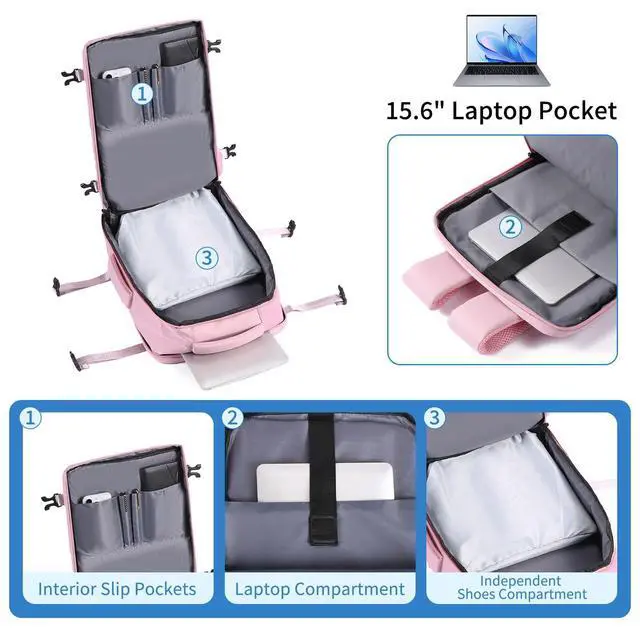 Shoes & Laptop Pockets: It includes a dedicated laptop sleeve that fits up to a 15.6-inch laptop. One shoe compartment on the bottom of backpack carry on to keep the shoes separate and everything else clean. Two venting hole in shoe section, make it keep breathable to not smelly