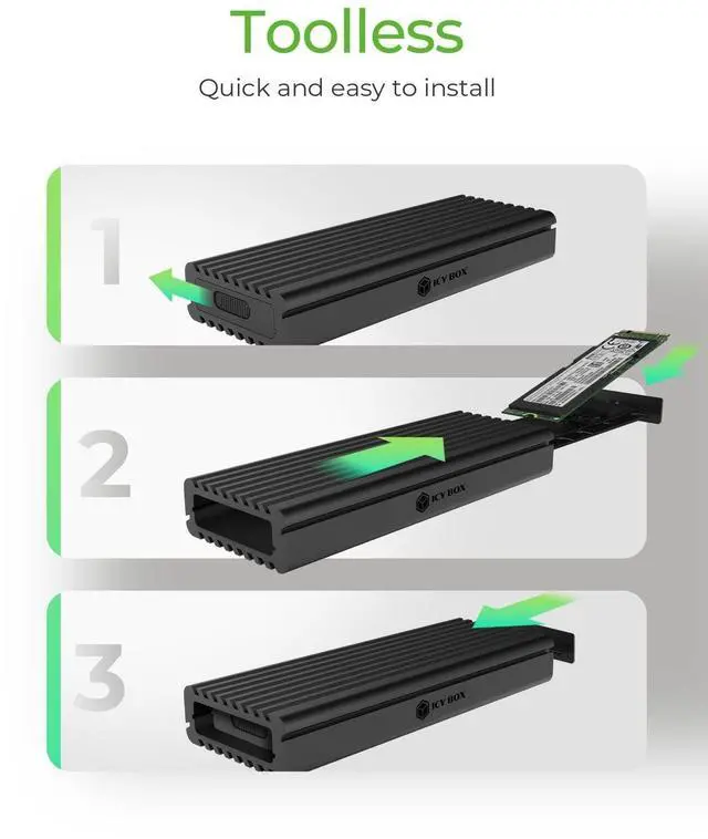 What You Get: Icy Box's 26-year German-engineered storage - M. 2 NVME SSD Enclosurer, USB-C and USB-A Cables, Thermal Pad, Heat sinkTool for write protection switch24month warranty and lifetime expert support.