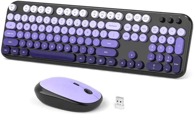 Dilter wireless keyboard and mouse set, cute appearance is specially designed for young people and ladies, it will become a good partner for office, school and family! Retro Typewriter KeyboardCute round keycaps, crisp and sweet sound, perfect knocking feel, let you find the feeling of a retro typewriter. And its detachable, make the keyboard easy to clean. Long Signal RangeYou won't have to worry about losing signal from the wireless keyboard and mouse, which easily holds a connection to your device as far away as 33 ft. Gorgeous Color KeycapsEvery keyboard is painted with kinds of color to help you be outstanding in the office.