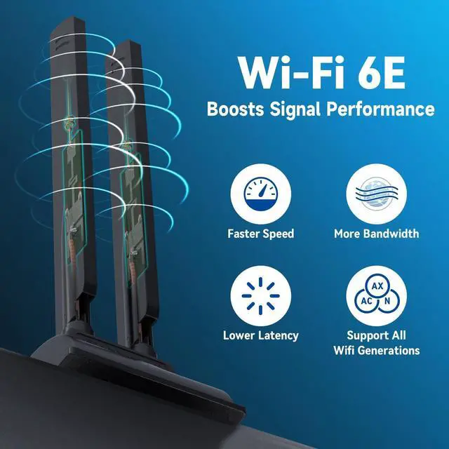 WiFi 6E Benefits: Harness the power of the 6 GHz band for enhanced bandwidth, faster speeds, minimal latency, and reduced interference. Ideal for online gaming and streaming 4K/8K video ^^