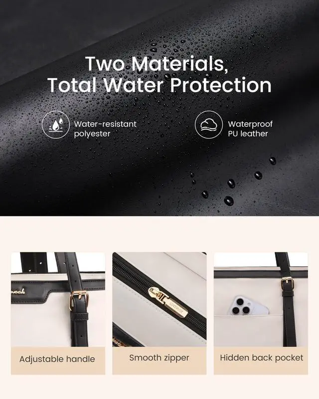 The height of the adjustable handle can be freely adjusted according to your comfort level, with a height range of 9.1 ~ 13.2 inches. At the same time, the computer bag can be easily switched between three carrying modes such as shoulder bag, handbag, and tote bag, suitable for pairing with formal or casual wear, high or flat shoes, and discovering more different dressing styles ^^ Portable Access & StorageThe computer tote bags features separate laptop compartments with thick protective design and Velcro straps for safety. The internal pockets on both sides can hold large water bottles and umbrellas, while the three open pockets can store cosmetics, stationery, and more.