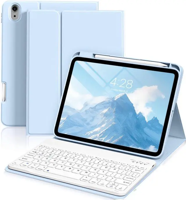 ZKTUYU for iPad (A16) 11th/10th Generation Case with Keyboard 11/10.9 inch 2025/2022, Detachable Wireless Bluetooth Keyboard Case Thin & Light, Built-in Right Side Pencil Holder (Sky Blue)