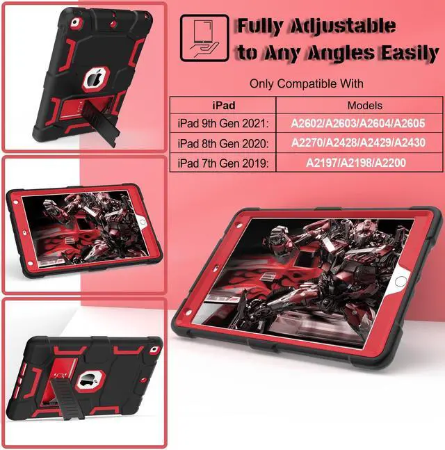 Number: A2602/ A2603/ A2604/ A2605/ A2270/ A2428/ A2429/ A2430/ A2197/ A2198/A2200), [Without Screen Protector]. ^^ Exclusive Design The appearance design makes you associate with the hero of animation. Fans can imagine heroic battling villains in a fight for the fate of the world with this ipad 9th generation case figure. Muscle mass design makes it more protective and easy to hold. ^^ Upgrade KickstandiPad 8th generation case built-in sturdy kickstand, extremely convenient and easy to push out and back in. Allows easy access to your favorite shows, movies, and games while on the go. ^^ Kids ProofThree Layer design combines a premium shockproof silicone outer layer with a hard PC cover; excellent ipad 10.2 case and withstands accidental drop, bump and shock damage. ^^ Ideal Tablet AccessoriesFlexible to use your iPad 7th generation during work, studying or journey, great ideal for kids, students, teachers, or engineers. It is the best choices for kids, boys, husband, boyfriend, family and friends.