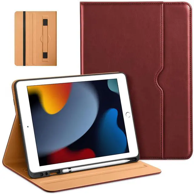 Compatibility: This Folio Case is compatible with 10.2" Tablet iPad 9th Generation 2021(A2602/A2603/A2604/A2605), iPad 8th Generation 2020 (A2270/A2428/A2429/A2430), iPad 7th Generation 2019 (A2197/A2198/A2200). Not compatible with any other iPad devices. ^^ This case gives you the flexibility to adjust iPad 10.2 to multiple angles according to your needs, making it easy to type or watch and freeing up your hands. The file card holder is designed to hold bank cards, bills, cash, paper, documents, etc. while you are on the go. ^^ The exterior is made of high-quality synthetic leather, which is comfortable to touch. The interior is made of soft microfiber that protects against scratches, shocks, drops, and impacts. Slightly raised edges protect iPad's camera and screen from drops. ^^ Built-in magnetic stripe provides sleep/wake function. Unobstructed access to charging port, speaker, headphone jack and volume keys. Built-in leather hand strap (one-handed operation). ^^ The pen holder slot can hold your pen tightly and won't fall off accidentally.