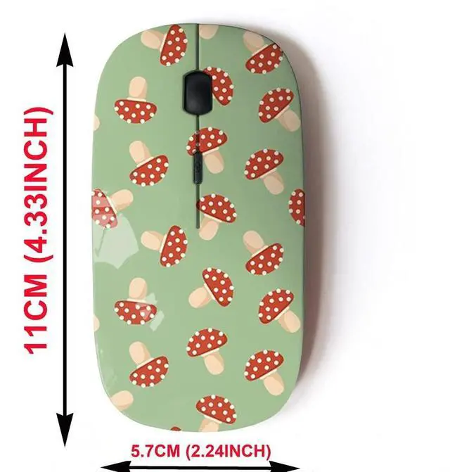 CJCBROES 2.4G Wireless Mouse with Cute Pattern Design for All Laptops and Desktops with Nano Receiver - Mushroom Colorful Doodle on