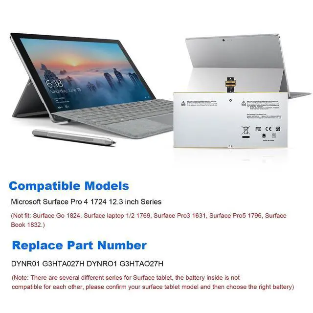 Compatible Models: Microsoft Surface Pro 4 1724 12.3 inch Series.
