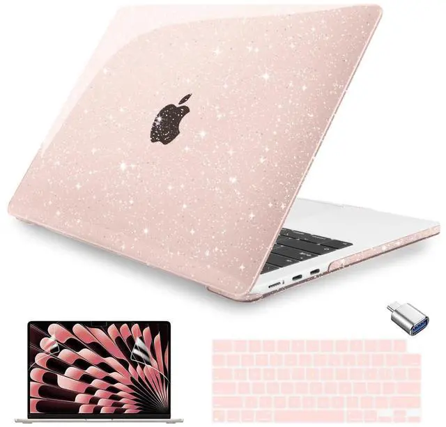 Glitter CASE FOR MACBOOK Air 15 INCH - Only Compatible with MacBook Air 15 inch 2023 2024 2025 Release with Liquid Retina Display & Touch ID, Model: A2941 M2/A3113 M3/A3241 M4. ^^ [PRECISE CUT OUT DESIGN FOR 15 INCH MACBOOK Air]-Easy access to all ports and features, you can plug your charger, cable or headset without removing the case. ^^ EASY INSTALLATION AND PERFECT FIT- two-piece snap on design for easy installation and removal. Allows your Air 15 inch to open more than 90 degrees and precise cutouts allow full access to all functions, fontrols, and Buttons. Plug your charger, cable, or headset without removing the case. ^^ DURABLE MATERIAL- Air 15" Case is made of high-quality plastic materials, replacing your computer to withstand everyday fingerprints, scrapes, and scratches. ^^ 5IN1 BUNDLE - Including 1 Air 15" Case (including top and bottom cover), 1 matching Keyboard Cover, 1 Screen Protector 1 Dust Plug, 1 USB Adapter. Give your computer full protection. Teryeefi offers 1 year warranty for case and keyboard cover.