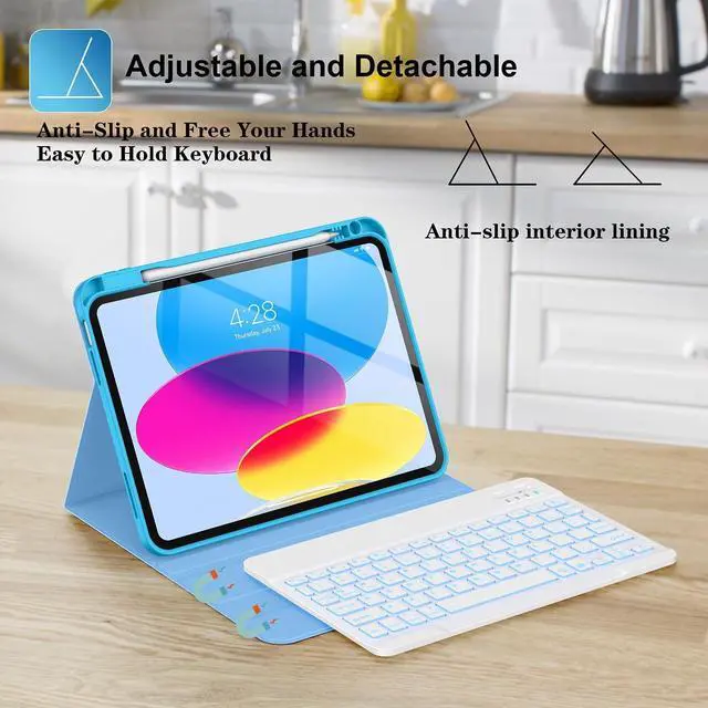 Backlit Keys: This iPad 11th/10th Gen 10.9 inch keyboard case is designed with 7 colors backlit keys that allow typing is more easy in dark, bringing you different visual enjoyment. Rechargeable and