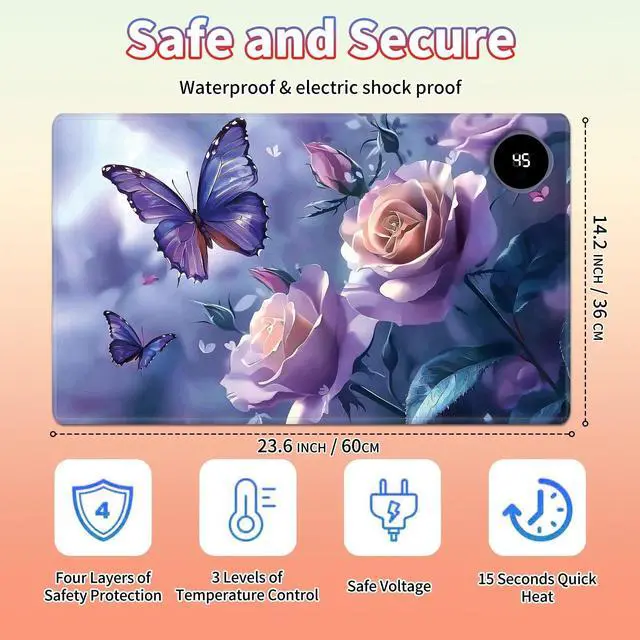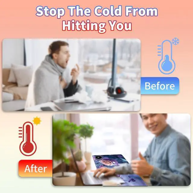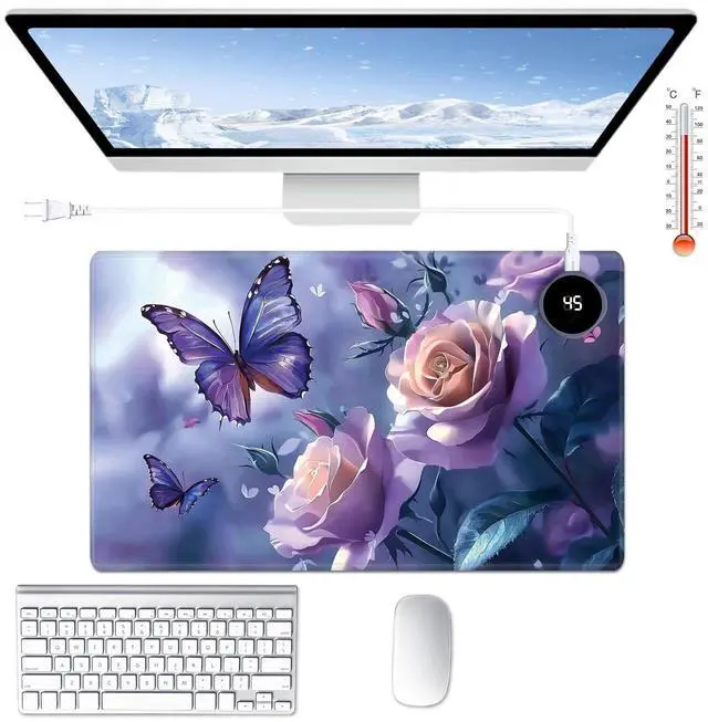 Are You Tired of Having Cold Hands While Working or Gaming? Select BPQOJB Heated Desk Pad is here to keep you warm and comfortable Whether You're Working, studying or gaming, Heated Mouse Pad ensures you stay cozy and productive all winter long Fast Heating with 3 Adjustable Levels Heated Desk Mat with 3 temperature settings: Low (40C / 104F) for gentle warmth Medium (45C / 113F) for consistent comfort High (50C / 122F) for a quick boost of heat Desk Hand Warmer Simple touch control lets you switch between levels effortlessly, You can set it to the right warmth. just seconds, feel the heat and say goodbye to cold hands, wrists, and arms Auto Shut-Off Design Mousepad warmer includes 1, 2, and 4-hour auto shut-off timers. Long-press the power button until it flashes to activate. helping you save energy Durable Material Crafted from smooth PU leather, Gaming Mouse Pad Warmer features a waterproof and easy-to-clean surface Heated Desk Mat Non-slip base keeps it securely in place, providing a stable surface for your keyboard, mouse, and laptop Large & Multi-Functional Design Large Mouse Pad at 23.6 x 14.1 x 0.08 inch (60x36x 0.2 cm) is spacious enough for your desk essentials, keeping your workspace neat and organized Warmer Mouse Mat is winter companion, not just for desksuse it as a foot warmer, a cozy pet mat or resting surface. Perfect for home offices and gaming Pattern Printing Design Unique Pattern Printing Heated Desk Pads decorate your study, computer desk, bedroom or office, perfect accessory for any modern office and home BPQOJB Pattern printing desk mat is the best gift for family, friend and yourself