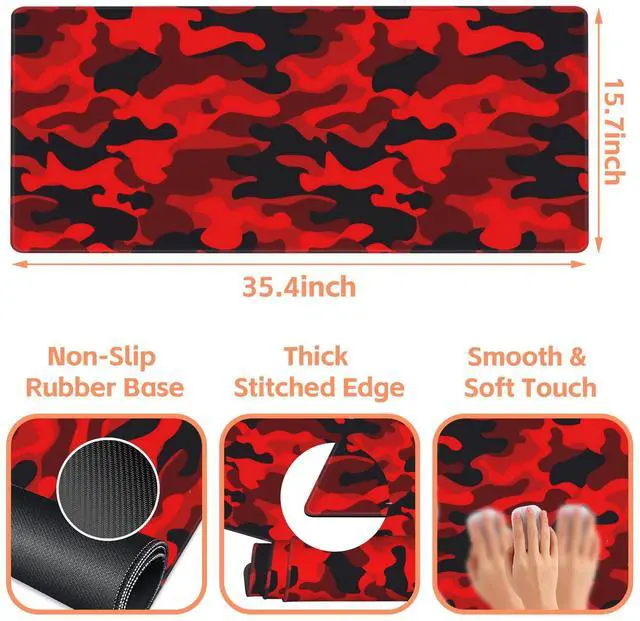 NIYLYNSYN Camouflage Print Gaming Mouse Pad,Large Non-Slip Thick Stitched Edge Mouse Mat for Home Office Gaming Keyboard Desk Pad (35.4 x 15.7 Inches)