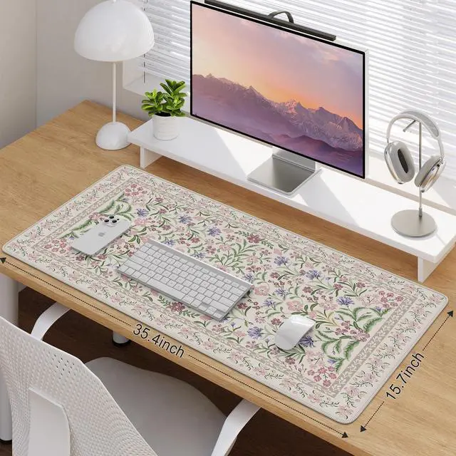 desk pad mat's measure: 35.4 x 15.7 inches. The adorable keyboard and mouse pad is large enough to have a mouse, gaming keyboard, and other desk items Just immerse into your work or games. It's a good desk skirts for teacher desk ^^