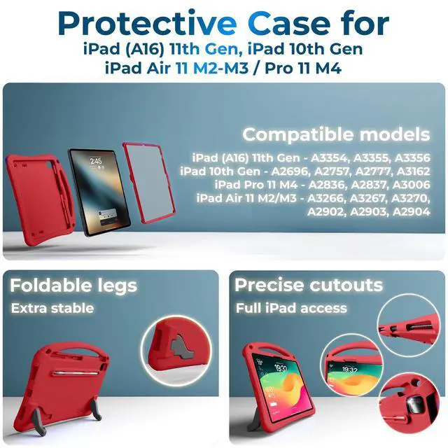Case Design: Crafted for iPad Air 11/iPad Pro 11/iPad 11/iPad 10.9; case for kids with shock-absorbing foam & built-in screen protector against drops, screen damage; practical adjustable shoulder strap with safety release ^^ All