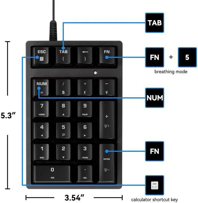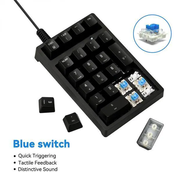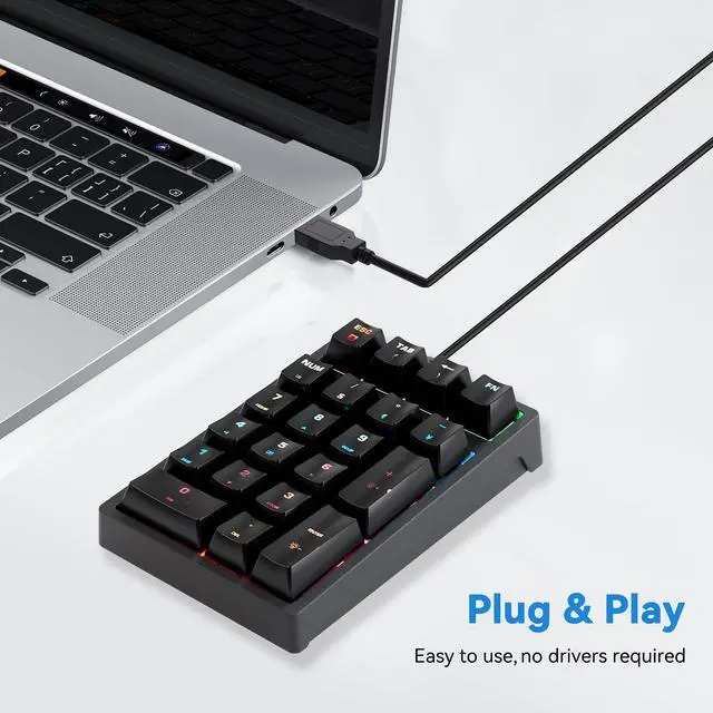 Mini Teclado NumeRico - Plug And Play, Usb Connection, No Device Drivers, Is An Ideal Choice For Spreadsheet Accounting And Financial Applications. No Battery Required, Don'T Have To Worry About Your Number Pad For Laptop Will Be No Power. ^^ 21 Keys Mechanical Numeric Keypad - Mechanical Numberic Keypad Has 17 Numeric Keys And 4 Additional Keys, Including "Tab""Esc"""And "Fn". ^^ Ergonomic Design - The Stepped Keycap, Fit Your Hands Easily To Prevent Fatigue. Spring Type Ergonomic Design, Care For Your Wrist. ^^ WIDELY COMPATIBILITY - Works With Pc And Desktop Computers That Have Windows 2000 / Xp / Vista / 7 / 8 / 10, Android/Linux ^^ RGB Backlight And Blue Switch - Support 9 Backlight Modes.