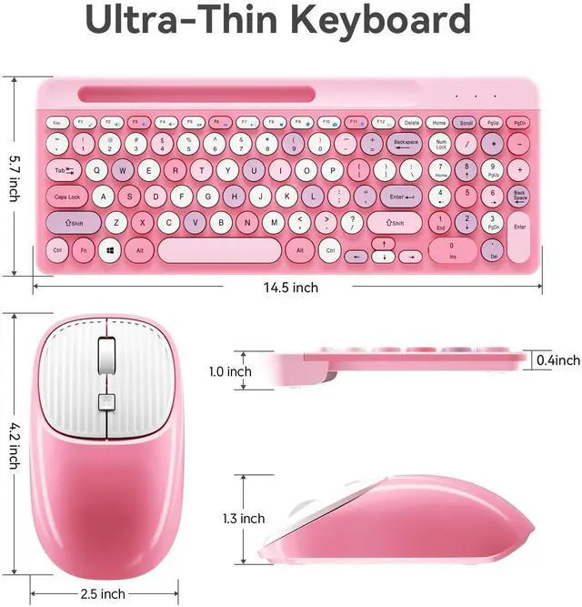 ^^ Silent Wireless MouseComputer mouse provides whisper silent click, no need to worry about disturbing others to rest while working or playing. DPI adjustable mouse provides 3 levels of DPI (800/1200/1600) to meet your different needs in terms of sensitivity. ^^ Compatible wireless mouse and keyboard comboIncludes a full-size keyboard and a high-sensitivity mouse. Works with your PC, Desktop, Laptop or Notebook. Compatible with Windows XP / Vista / 7 / 8 /10 operating systems. ^^ Power indicatorthe new battery into the keyboard and mouse, if the normal connection with the computer power red light will flash 5-8 seconds off, if the computer is not normally connected to the power red light on for a moment on off.