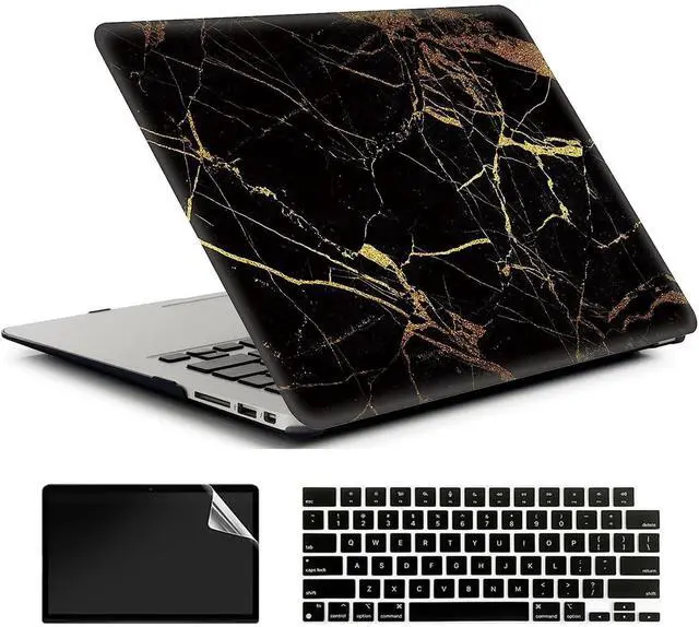 AMCJJ Compatible with MacBook Air 15 inch Case 2025 2024 2023 M4 M3 M2 A3241 A3114 A2941, Protective Plastic Hard Shell & Keyboard Cover for Mac Air 15 inch Case M4 M3 M2 - Black Gold Marble