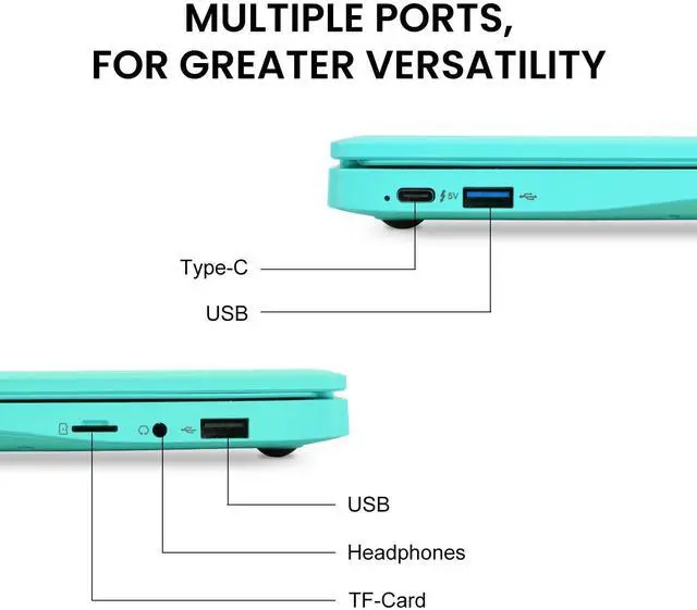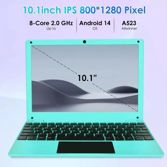 OPERATING SYSTEM: Equipped with Android 13, providing access to the latest Android features and applications. The Mini Laptop combines a powerful Allwinner A523 CPU with 4GB of RAM to handle your daily tasks, from web browsing and video streaming to light work and study.
