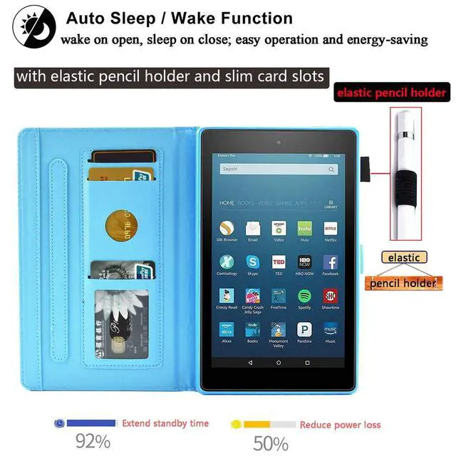 Magnetic Closure: built-in magnet to keep the fire HD 8 (8th/7th/6th gen) slim book case closed and protect the screen. 7.