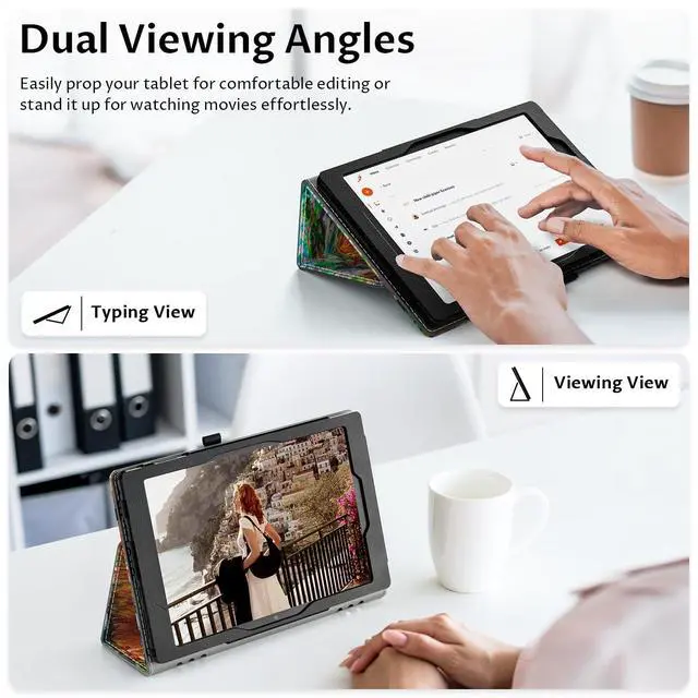 Angles]: Kindle Fire 10 case with useful dual-angle stand design, choose the typing angle or viewing angle as you want, provide comfortable viewing angles for reading, viewing, typing, or making video calls ^^ [Auto