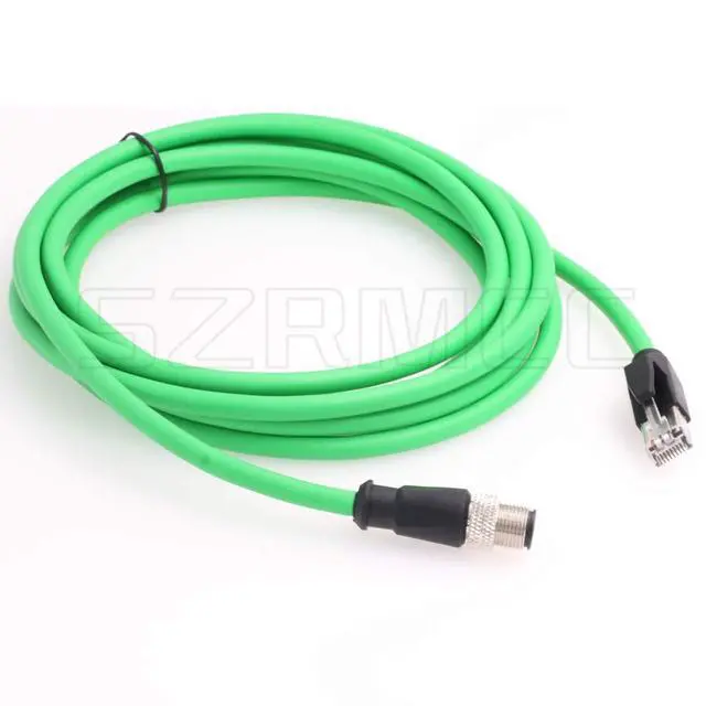 The industrial ethernet cable is a single foil twisted pair cat5e cable with a black PUR jacket rated at 24 AWG shielded wire. Both the M12 and RJ45 connectors have a molded black TPU strain Relief. ^^ Waterproof IP68 connector Fit for Industrial Machinery, Ethernet, network applications, Matrix Vision, Triton camera models, and more GigE Vision camera.