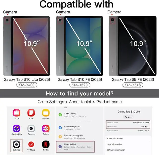 COMPATIBILITY: This case is suitable for Samsung Galaxy Tab S10 Lite 5G 10.9 inch (Model SM-X400/X406B) 2025 Release, Samsung Galaxy Tab S10 FE 5G 10.9 inch (Model SM-X520/X526B/X528U) 2025 Release, Samsung Galaxy Tab S9 FE 5G 10.9 inch (Model SM-X510/X516B/X518U), Samsung Galaxy Tab S9 11 inch (Model SM-X710/X716B/X718U) 2023 Release tablet. Does not work with any other device models ^^