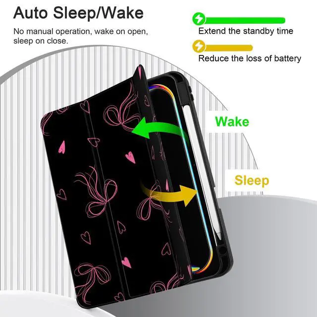 Released Characteristic: 1. The case is made of premium PU exterior, microfiber lining and soft TPU back cover 2. Case automatically wakes your tablet when opened and puts it to sleep when closed 3. You can easily fold the cover into different positions to create a stand for reading, viewing, typing, or making FaceTime calls 4. Built-in pencil holder, grab your tablet pencil effortlessly whenever you want, easily carry your tablet pencil with your device 5. Easy to Installation and remove 6. Convenient to use all the controls and features