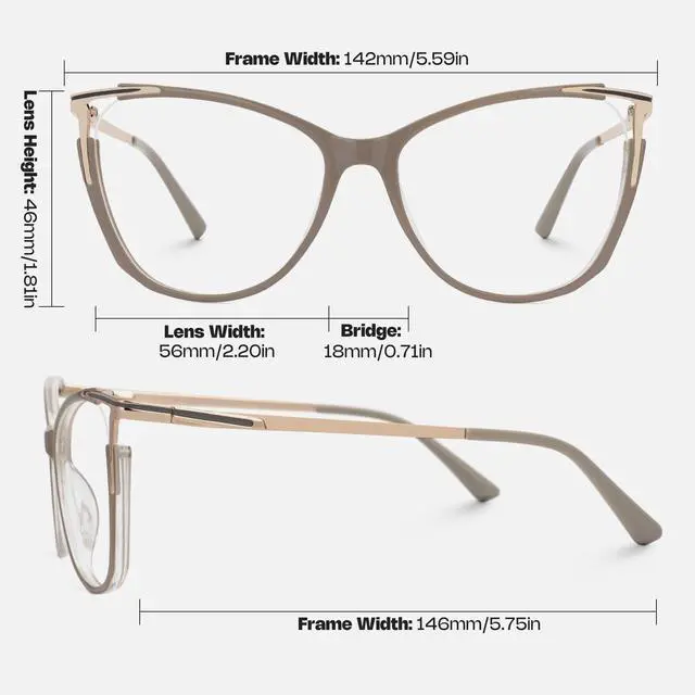 Blue Light Blocking Lens Our blue light blocking glasses comes with UV400 protective lenses, it can protect our eyes from blue light and harmful rays, relieve your vision fatigue and headache at work and in life to get a better sleep. ^^ Material Made with premium mixed materials, this stylish pair of cat-eye glasses is suitable for all-day comfort. It is a perfect ornament that makes you look both stylish and elegant. ^^ DesignOur glasses are equipped with one-piece nose pads, which are more comfortable to wear and reduce the pressure on your nose; the temples are designed to be more flexible and the spring hinges are easier to adjust.