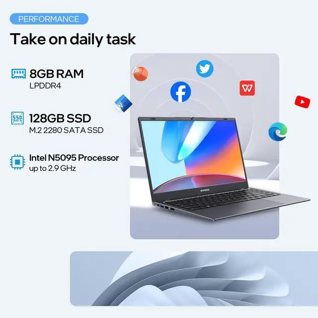 Powerful Performance: The laptop has a 4-core N5095 processor, providing robust and efficient performance for all your tasks. Coupled with 8GB of RAM, it handles multitasking with ease, while the 128GB SSD offers lightning-fast boot times and quick access to your data.
