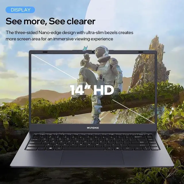 ^^ Visual Excellence: Feast your eyes on the 14-inch HD display, This laptop computer offering a crystal-clear viewing experience with vibrant colors and sharp details. Perfect for both work and entertainment, the screen's 170 wide-angle ensures everyone around can enjoy the view.