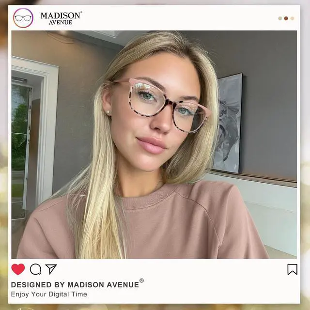 Gifted Package with Exquisite Leather CaseEach eyeglasses comes with a delicate leather case, a micro fiber glasses cleaning cloth and a booklet. Exquisitely package making it an ideal gift for friends and family! ^^ Madison Avenue Blue Light Blocking Lens Filter high level blue light from digital screen of computer, phone and TV, maintain HD clear vision with less color distortion. ^^ Relieve Eye Strain and help Sleep BetterReduce eye fatigue, headache, blurry vision caused long time exposion to blue light ray, protect eyes from UV and Glare. ^^ Metarial and DesignLight weight TR90 frame with anti-scrached PC lens, duarable metal hinge provide you comfort fit.