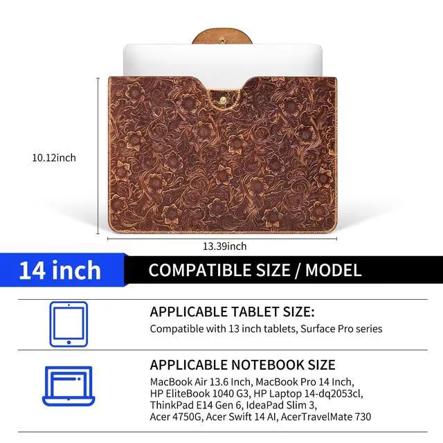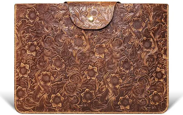 In our fast-paced world, your laptop is not only a productivity tool but also an extension of your personal style. This CPNVWA Tang grass flower brown laptop sleeve is made of top-grain cowhide, integrating durable quality with European retro aesthetics. It provides all-round protection for your cherished devices while highlighting your extraordinary taste