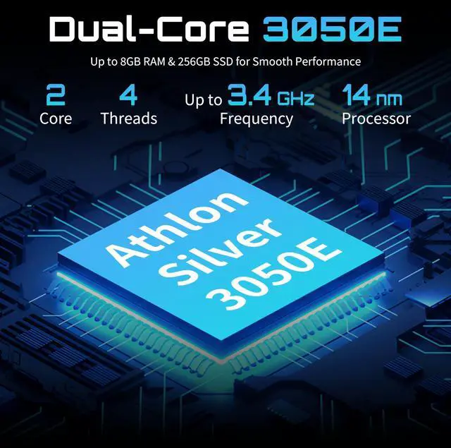 High-Performance Dual-Core Processor: Powered by the 3050E CPU, 1.8GHz (up to 2.8GHz) with 4 threads, ensuring smooth multitasking, work, and entertainment on this laptop
