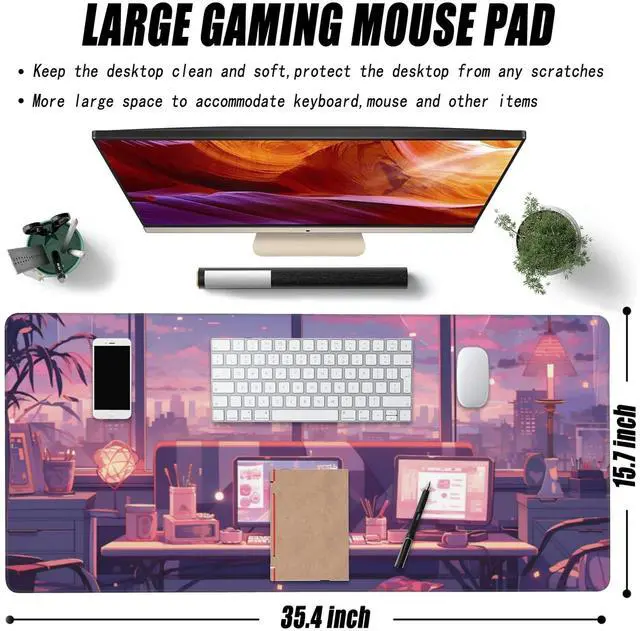 XXL Mouse Pad Gaming: The measure size is 35.4" x 15.7", it is large enough to cover your desktop. The Large size ensures free movements of your mouse without any interruptions. It also can protect your desktop from any scratches or stainess ^^