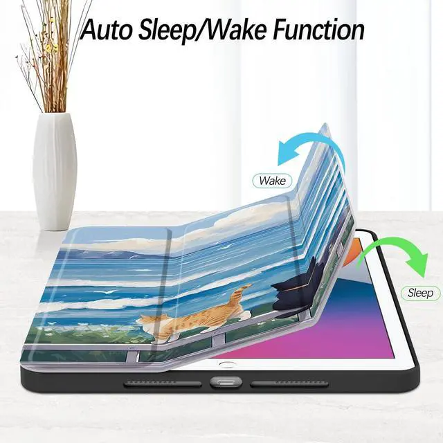 Not included) ^^ [Stand function]: This case features a classic tri-fold stand design with two folding angles, making it easy for you to read, type or watch videos ^^ [Auto sleep/wake]: The built-in magnetic strip on the front cover makes your tablet wake up automatically when it is opened and puts the device to sleep when it is closed. No wasted battery energy and extended battery standby time