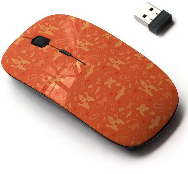 CJCBROES 2.4G Wireless Mouse with Cute Pattern Design for All Laptops and Desktops with Nano Receiver - Halloween Orange
