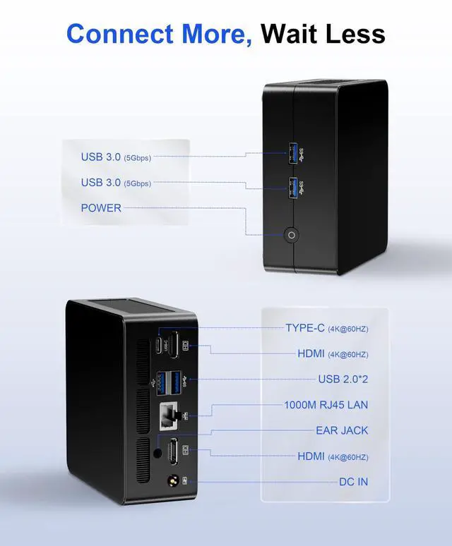 Ideal as a mini workstation or 4K home entertainment PC ^^ Stable Wireless Connectivity WiFi 5 + Bluetooth 4.2S tay connected with dual-band WiFi 5 ( 2.4GH z/5GHz) for stable and fast data transfer, online meetings, and 4K streaming. Bluetooth 4.2 ensures smooth pairing with wireless devices such as keyboard, mouse, headset, or printercreating a clutter-free workspace. Perfect for remote work, gaming, and media streaming on your mini computer ^^ Compact, Quiet & Reliable Design Windows 11 Pro ReadyThis compact mini PC packs full-size performance into a palm-sized chassis ( 4.5 4.2 2 inches).
