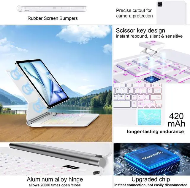 Case Compatibility: This premium slim keyboard case is perfectly compatible with 2025 M3 iPad Air 11-inch (A3266, A3267, A3270), 2024 M2 iPad Air 11-inch (A2902, A2903, A2904), 2022 iPad pro 11 inch 4th generation (A2435, A2759, A2761, A2762), 2021 iPad pro 11 inch 3rd generation (A2377, A2301, A2459, A2460), 2020 iPad pro 11 inch 2nd generation (A2228, A2068, A2231), 2018 iPad pro 11 inch 1st generation (A1980, A2013, A1934, A1979)