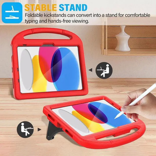 Generation 10.9 inch 2022(Model: A2696 A2757 A2777), NOT fit for iPad Air 4/5( 10.9" ). Please CONFIRM your iPad model before purchasing. ^^ Full-body ProtectionMade of durable, child-safe, lightweight, wear-resistant, shock-absorbing EVA material, protects your iPad from accidental drops and bumps. ^^ Built-in Screen Protector & Pencil HolderBuilt-in a clear screen protector prevents scratches and dirts, pencil holder allows you easy store and remove your apple pencil (Pencil NOT Included). ^^ Built-in Stand & HandleBuilt in a foldable kickstand, it can convert into a stand for comfortable typing and hands-free viewing, Non-slip handle is designed to be easy for kids to carry. ^^ Easy to UsePrecise cut-outs for buttons, ports and cameras, allows you easy access to all features without removing the case, you can also easy to install or remove this case.