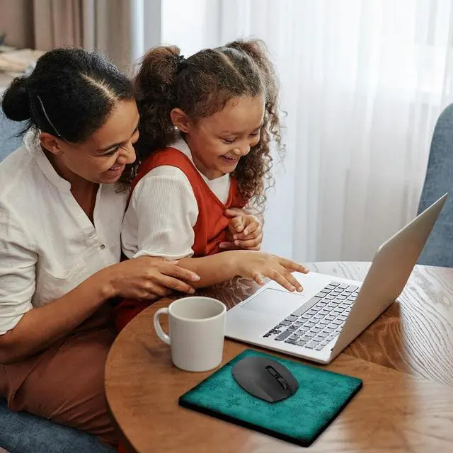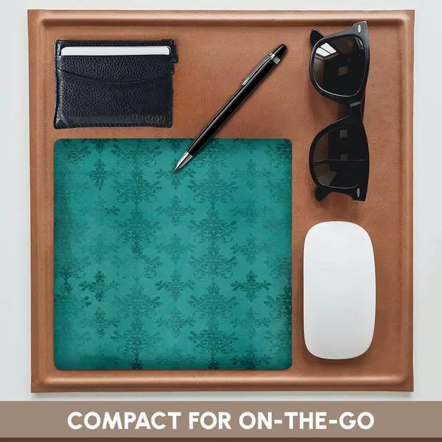 Grunge Faded Vintage Baroque Two Tone Blue Ornate Damask Pattern Mouse Pad is 8" x 8" x. 25" and is made of heavy-duty recycled rubber. Matte finish image will not fade or peel. Machine washable using a mild detergent and air dry.