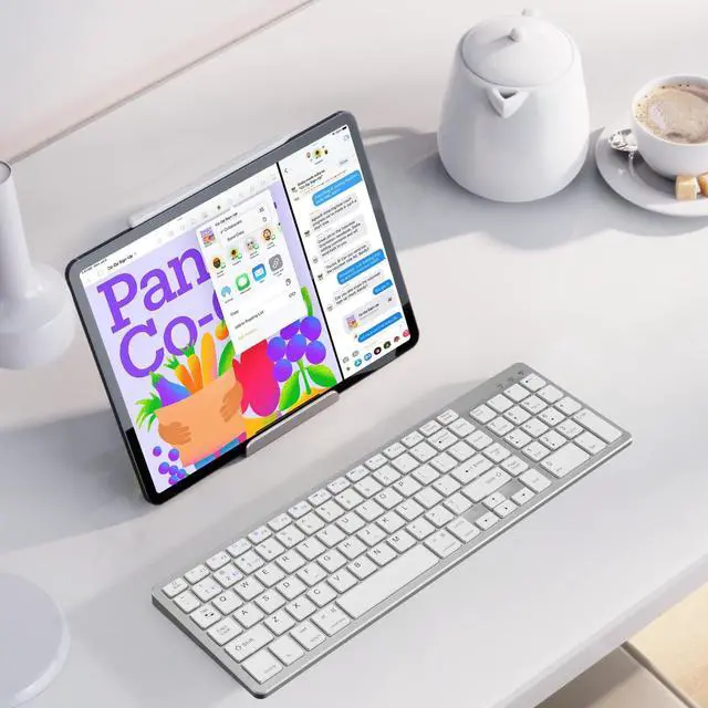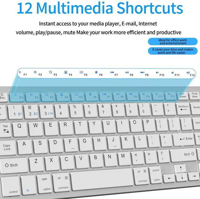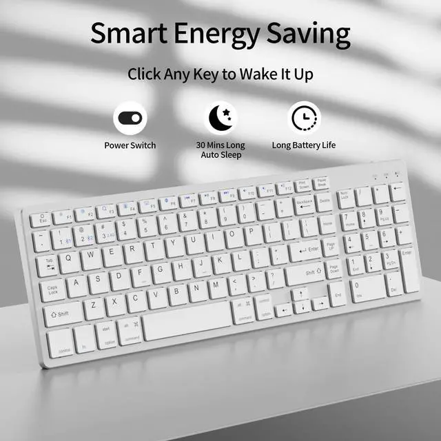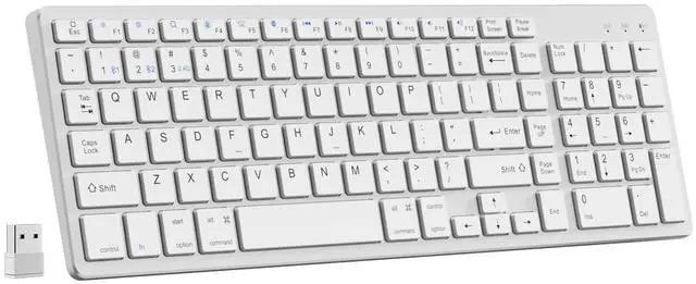 KTGGHG Slim Wireless Bluetooth Keyboard - US QWERTY Layout, Ultra Quiet, 2.4 GHz USB Receiver, Plug n' Play Connectivity, Compatible with iOS/Android/Windows Systems - Silver White