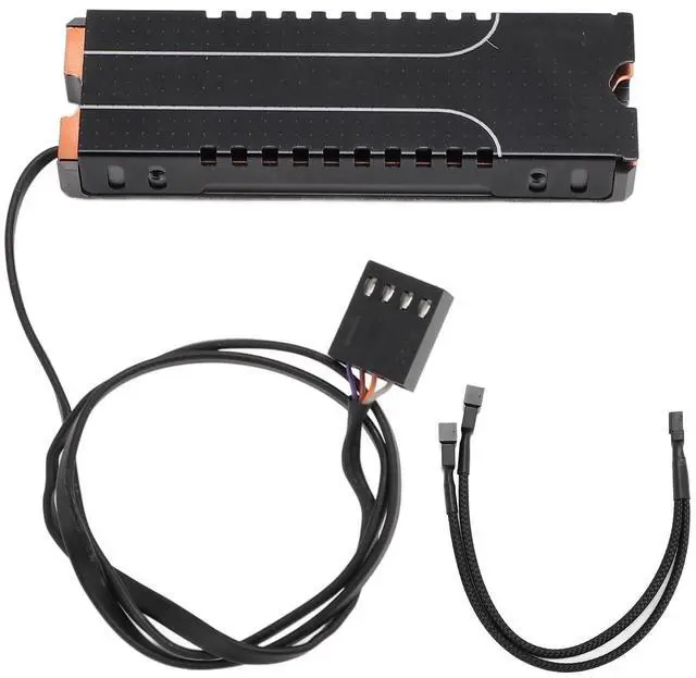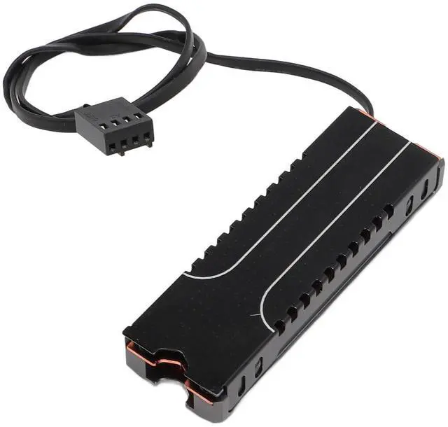 Item Type: M. 2 2280 SSD Heatsink with PWM Cooling FanMaterial: Silver Aluminum Alloy, Red CopperFan Type: PWM 4 Pin 12V FanSupport Hard Drive Size: M. 2 2280 SSDPackage List1 x M. 2 2280 SSD Heatsink1 x Adapter Cable