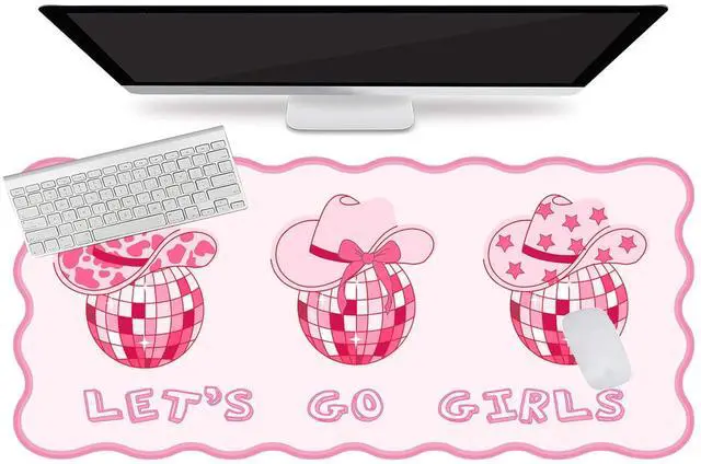 Rerto Irregular Wavy Design: Pink western bow cowgirl disco desk mat features a scalloped edge design, making it more stylish than traditional rectangular mouse pads. The cute pink western desk pad mat with exquisite stitched edges for wear resistance and durability, adding a touch of elegance to your desktop ^^ Large Desk