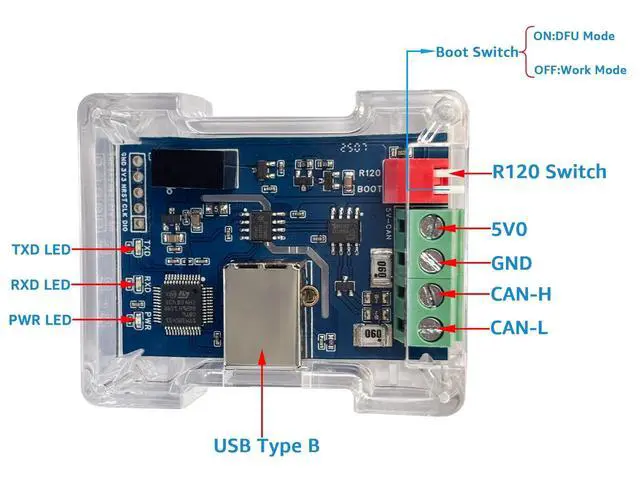 Power Isolation: Protects devices by blocking ground loops and electrical noise in high-voltage/noisy industrial environments. SH-C31G is an enhanced version of SH-C31A. It adds protection and isolation features to the SH-C31A, making it more suitable for industrial applications. ^^ Based on Canable 2.0