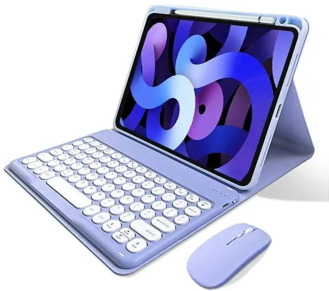 kaitesi Keyboard Case Mouse for iPad 11th Gen (A16, 2025) 11"/ iPad 10th Generation 2022 10.9" Case with Cute Round Keys Detachable Bluetooth Keyboard Cover,Purple