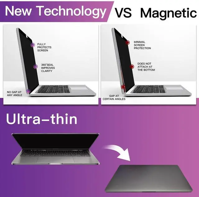 Complete fit The newly upgraded privacy screen macbook pro 15 inch is designed to fit the laptop screen seamlessly. It eliminates the need for any additional tools and ensures that there is no gap between the film and the screen when the laptop is closed. You can use it without any worries as it won't come off or leave any residue on your laptop screen. With this macbook air privacy screen, you can work, watch movies, or browse your favorite websites without any privacy concerns.