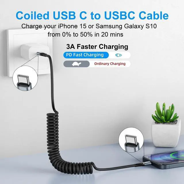 Charging for Car: Coiled type c car charger with spring shape design, portable and not tangled. It can well save the use of space in the car and say goodbye to the hassle of data cable clutter and tangles. ^^ Fast Charge and