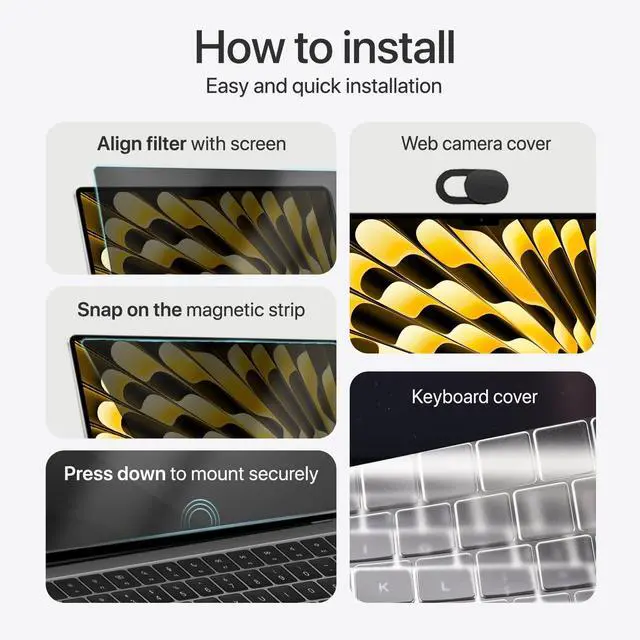 homy Magnetic Privacy Screen Protector for New MacBook Air 15 inch 2023-2024. Bonus: Ultra-Thin Keyboard Cover, Web Camera Lens Cover. Easy On-Off Security Filter for A2941 M2.