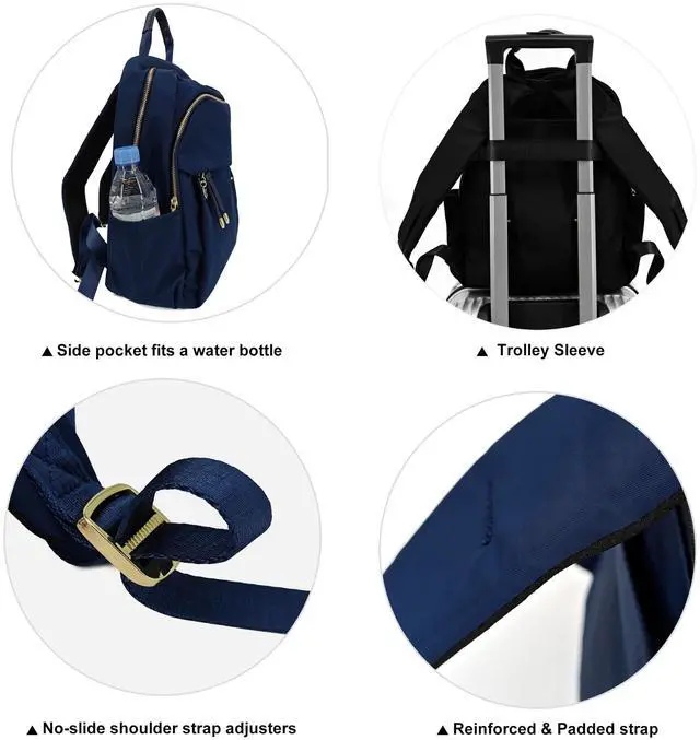 Organized Multi-Compartment StorageMedium size: 14.5" x 11.4" x 5.9". Designed with four zippered compartments, the main compartment of the M-ioi-M backpack fits a 1314" laptop, iPad Pro, A4 books, and other essentials. Side pockets hold water bottles or umbrellas, while a rear pocket keeps your phone and wallet secure. ^^ Comfortable All-Day WearThe M-ioi-M laptop backpack features wide padded straps with breathable mesh to relieve pressure and ensure comfort. Reinforced stitching and gold-tone alloy adjusters with anti-slip teeth keep straps secure great for work, college, travel, or outdoor activities. ^^ Ideal Gift for WomenCombining practicality with style, the M-ioi-M lightweight backpack makes a thoughtful gift for birthdays, anniversaries, Christmas, Mothers Day, Valentines Day, or graduation. A versatile choice for wives, mothers, daughters, students, and friends.