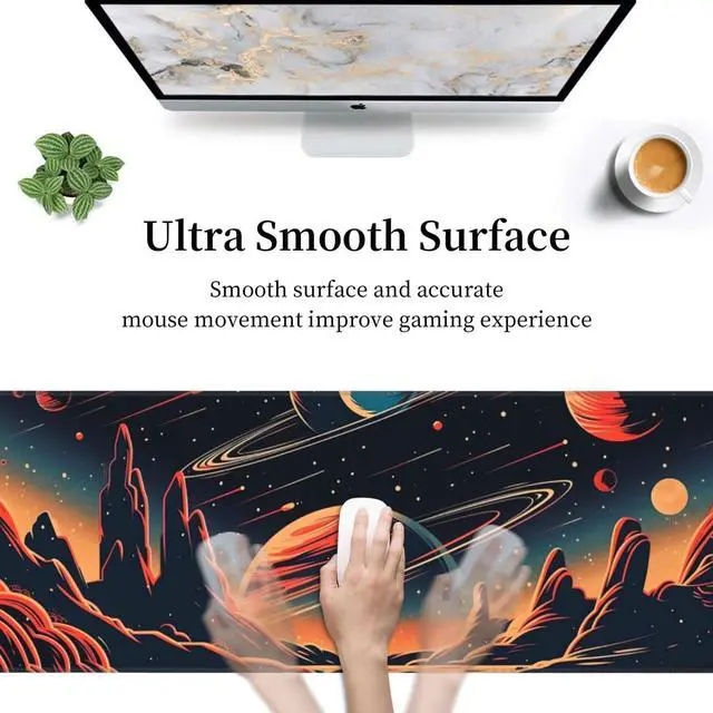 Awesome Outer Space and Planets Gaming Mouse Mat Extended Large XL Mouse Pad Desk Mat Non-Slip Rubber Mice Pads Stitched Edges for Office and Home,31.5 X 11.8 X 0.12 Inches