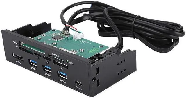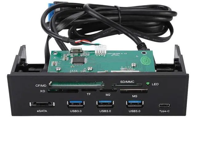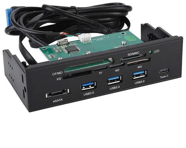 Description: This is a multi functional card reader that features three USB 3.0 ports, one USB 3.1 port, one eSATA port and 6 card slots. It supports M2, MSO, SD, MS, XD, 64G CF card and let you transfer files between your flash media and computer easily and quickly. It can be easily mounted into 5.25" drive bay of your computer case for added card reading capabilities.